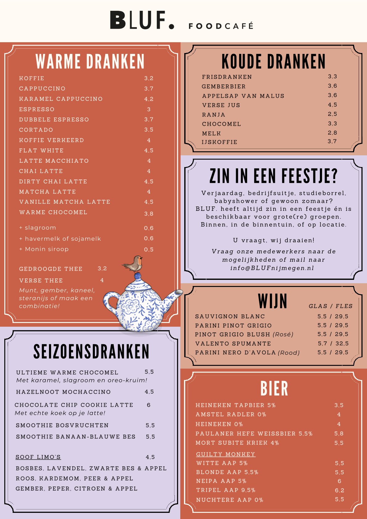 Alvast weten wat er op de kaart staat? Hieronder vind je BLUF.'s huidige menukaarten.